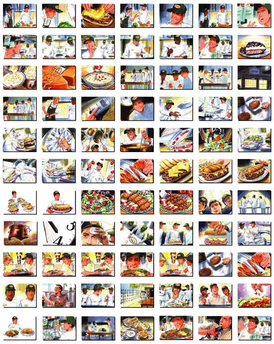 Team Stuff 161 frames for a Denny's new business pitch. Artists: Everybody.