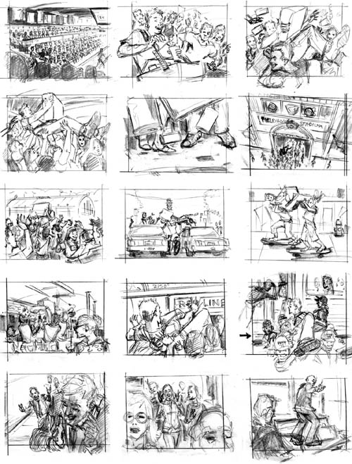 Thumbnails Roughs for approval. Artist: Mike.